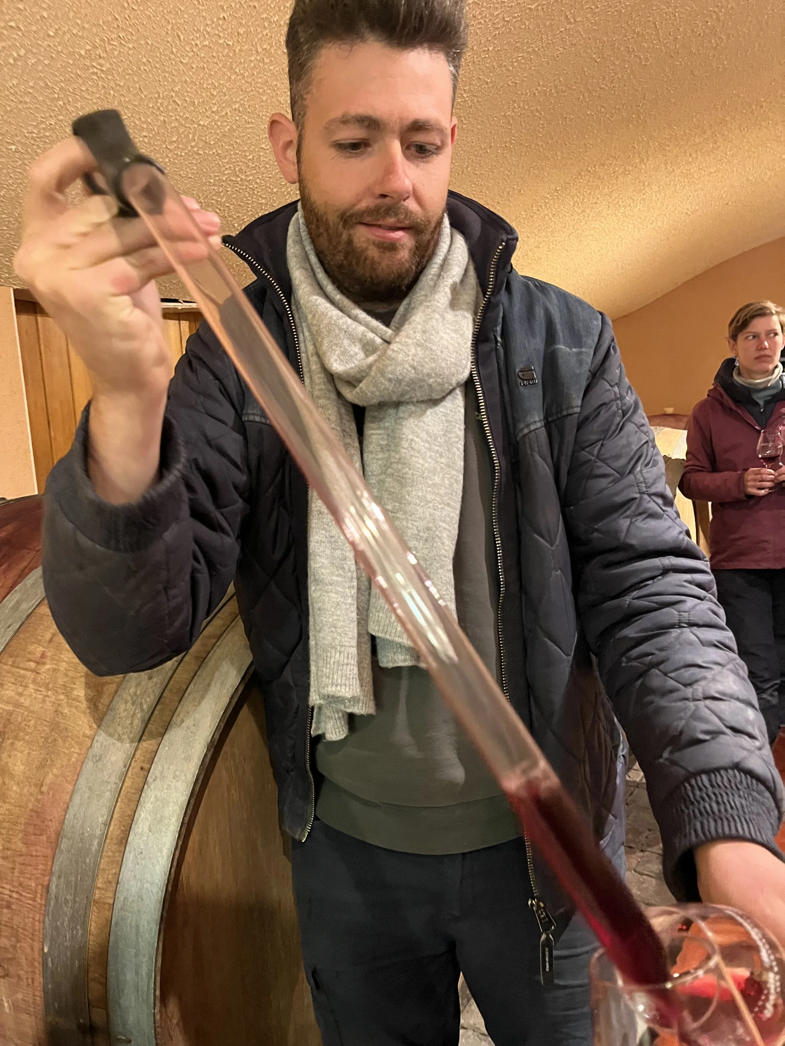 Basti est originaire de Baden en Allemagne, lui et son frère ont suivi le programme Steiner tout au long de leur éducation leur donnant le goût de la nature et des activités extérieurs. Son frère Christoph part pour la Bourgogne afin de travailler chez plusieurs domaines de grands noms tandis que Basti débute une carrière dans la comptabilité. Alors qu’il visite son frère en Bourgogne il déguste une bouteille de Ganevat qui lui donne un déclic pour le vin. Après quelques vendanges en Allemagne et Alsace il décroche un stage en 2019 au domaine Ganevat. Malheureusement un accident de skate juste avant les vendanges l’empêche de participer aux vinifications. Il lance alors son propre domaine « Laisse Tomber » en rapport à son accident et vinifie des raisins e France et d’Allemagne chez son frère au domaine Wasenhaus. Avec une production pas assez suffisante pour en vivre, il obtient un travail chez Jean-Yves Bizot à Vosne-Romanée. En 2020 il commence de vinifier plus de vin chez Chris Santini à Auxey-Duresses partageant la cave avec Vin Noé, Dandelion etc..